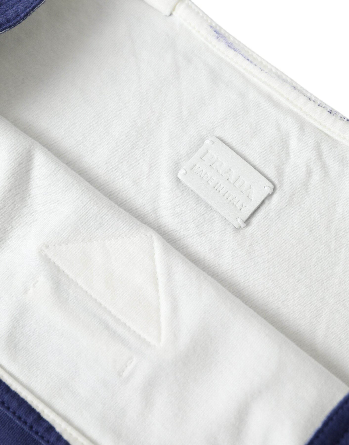 Prada Blauer Jersey Stoff Logo Schultertasche Einkaufstasche Einkaufstasche