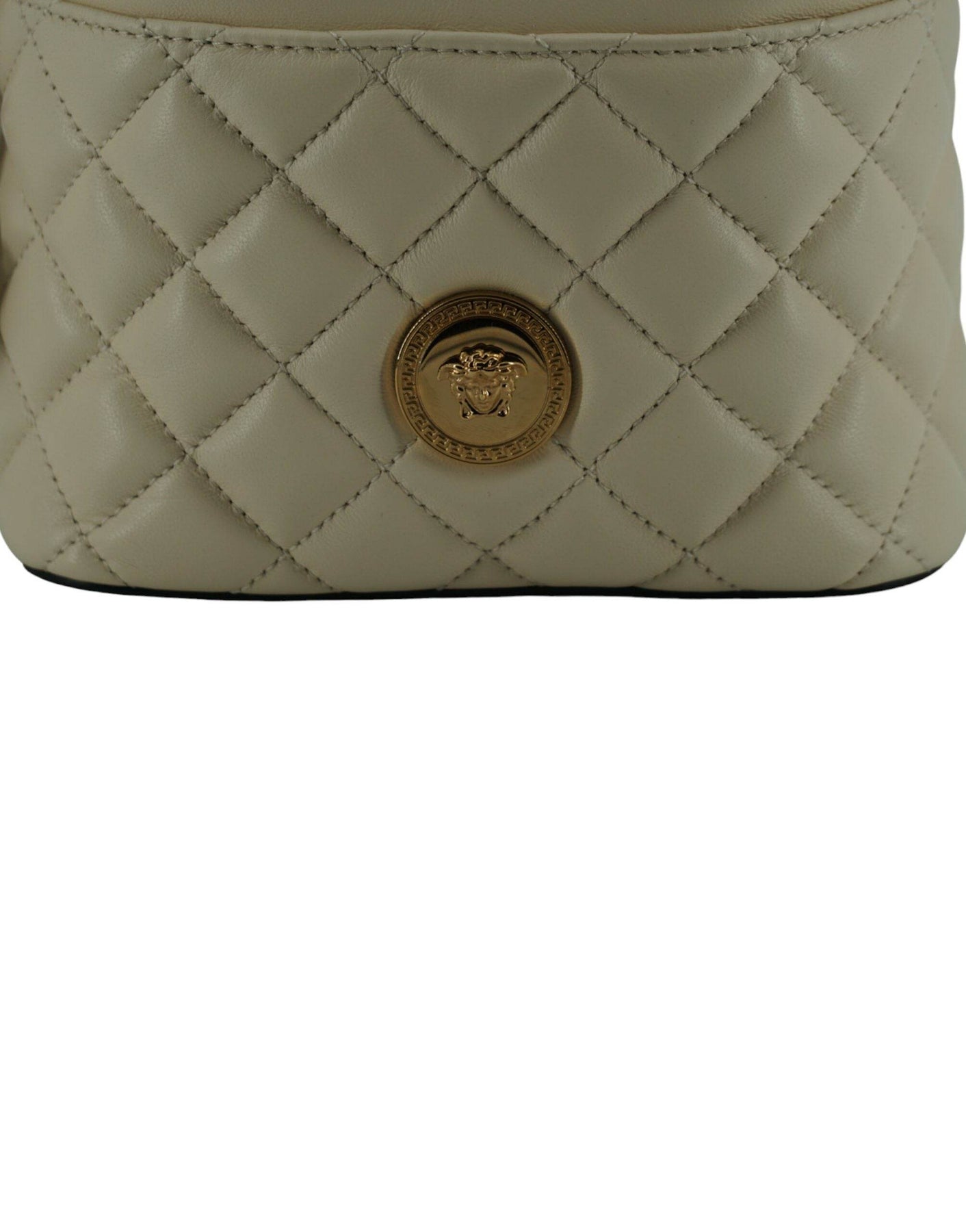 Startseite / Shop / Versace Elegante kleine Eimer-Umhängetasche aus weißem Leder
