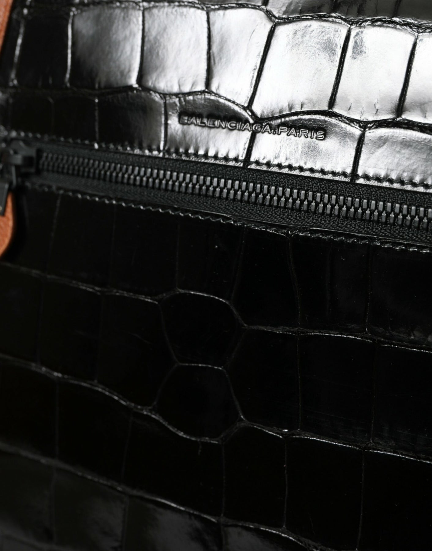 Balenciaga Schwarz Braun Exotische Haut Leder Vertikale Crossbody Geld