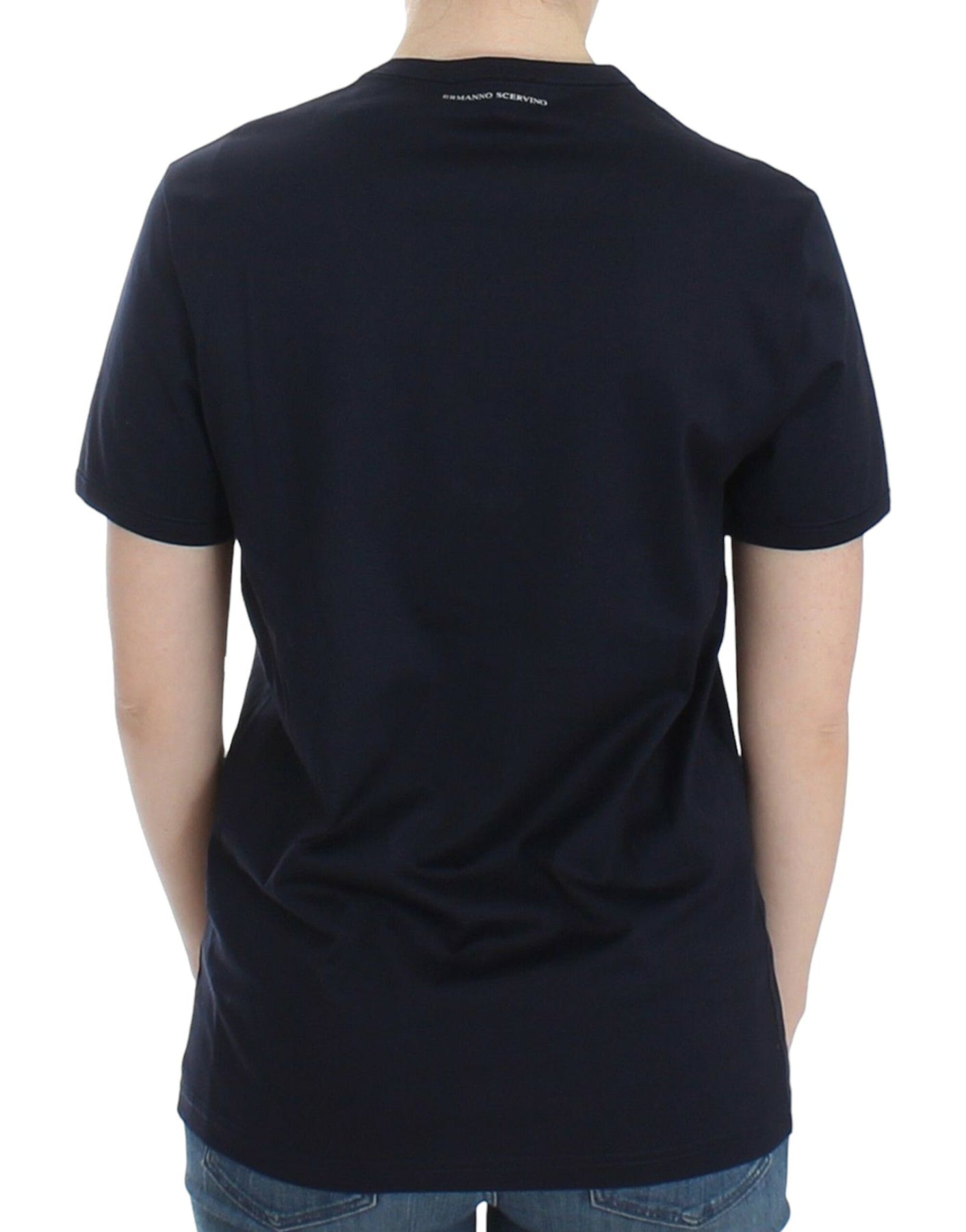 Ermanno Scervino Lingerie Blaues Logo-T-Shirt mit Rundhalsausschnitt aus Baumwolle