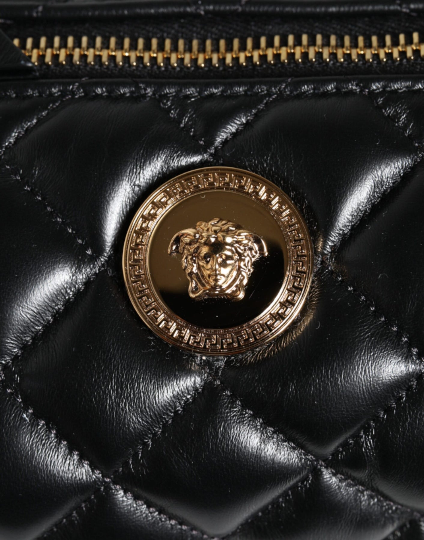 Versace Schwarz Mini gestepptes Lammfell Leder Crossbody Sling Borse Tasche