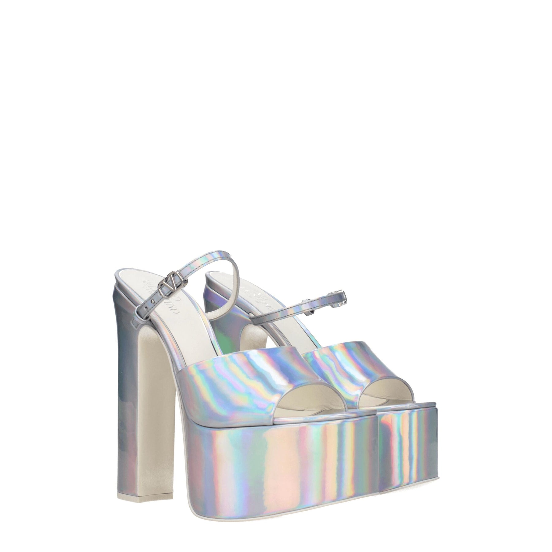 Das Produkt mit der MPN S0FS4AJJS13 und dem Code F79332 Lackleder in Silber ist eine von Valentino Garavani entworfene Sandale. Es hat Eigenschaften wie seitliches Detail, Metallic-Effekt.