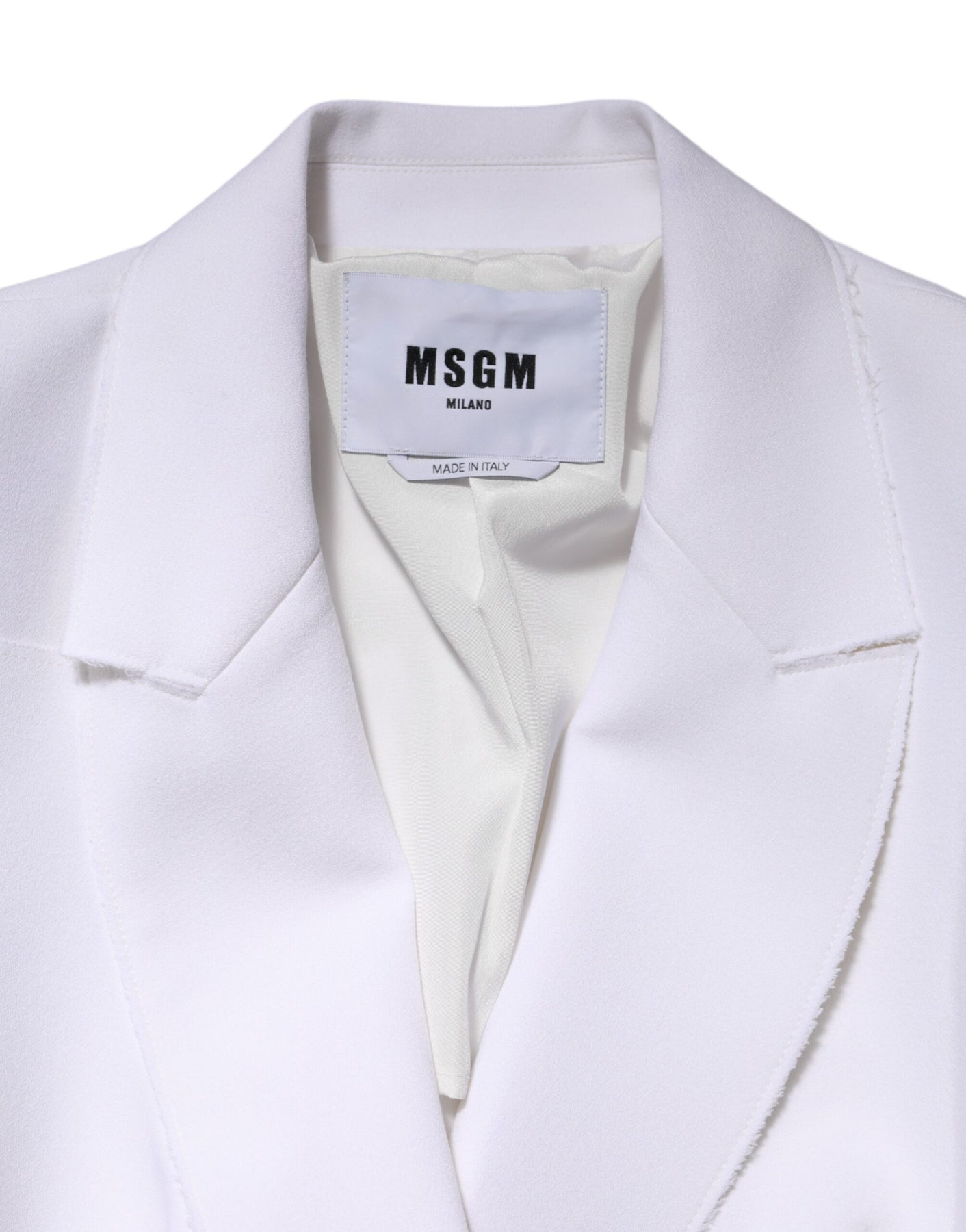 MSGM Weiße Polyesterjacke mit langen Ärmeln und geraffter Wickelstruktur